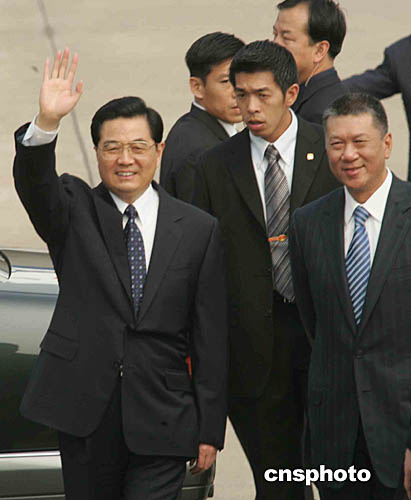 胡錦濤主席抵達(dá)澳門出席澳門回歸五周年慶典
