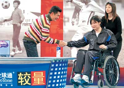 《較量》是目前內(nèi)地惟一一檔由國(guó)家體育總局支持的體育人物訪談節(jié)目,已經(jīng)播出一年有余,欄目主要通過(guò)訪談體育人揭示他們的人生亮點(diǎn)和特殊軌跡。照說(shuō)這樣的節(jié)目應(yīng)該找體育圈中的人,沒想到這次主持人卻換成了著名的“娛樂圈大嘴巴”黃安。問(wèn)黃安怎么混入“體育圈”的,黃安開口就讓人笑:“因?yàn)楣Ь、田亮走入娛樂圈了,所以我們這些娛樂圈的人要打進(jìn)體育圈!”接著他又正經(jīng)解釋,因?yàn)樗麑戇^(guò)的一本書《誰(shuí)搞垮了娛樂圈》吸引了欄目制片人的注意,覺得他的語(yǔ)言風(fēng)格比較適合《較量》,所以專門找他來(lái)當(dāng)這個(gè)主持人。