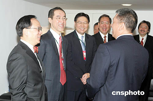 圖:何厚鏵與曾蔭權(quán)等香港政府官員交談