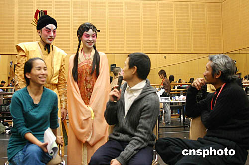 集合京劇、昆曲、臺灣原住民樂舞的跨年大型歌舞戲曲《暴風(fēng)雨》,將于十二月三十日至二零零五年在臺北連演四天。該劇取材自莎士比亞戲劇,由香港著名導(dǎo)演徐克(左一)、臺灣“反派大師”吳興國(左二)、獲奧斯卡金像獎(jiǎng)的臺灣造型師葉錦添聯(lián)袂奉獻(xiàn)。圖為二十一日該劇媒體見面會的情景。