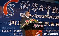 十二月二十二日,中國(guó)科學(xué)院、中宣部、教育部、科技部、工程院和中國(guó)科協(xié)六部委聯(lián)合主辦的“科學(xué)與中國(guó)”院士專家巡講活動(dòng)兩周年紀(jì)念報(bào)告會(huì)在北京中國(guó)科學(xué)院研究生院舉行,全國(guó)人大常委會(huì)副委員長(zhǎng)、中科院院長(zhǎng)路甬祥院士作了題為“世界科學(xué)技術(shù)的發(fā)展趨勢(shì)及其影響”的精彩報(bào)告。作者:徐曦弋