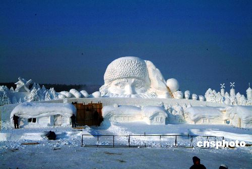 | 2004年12月22日,長春凈月潭國家森林公園的巨型“圣誕老人”。當(dāng)日,經(jīng)過長春凈月潭國家森林公園的上百名工作人員的日夜忙碌、35位哈爾濱專業(yè)冰雕師的精雕細(xì)琢,世界最大單體雪雕作品--“圣誕老人”在吉林長春凈月潭國家森林公園冰雪樂園全部竣工。據(jù)悉,該“圣誕老人”現(xiàn)體量長80米、高17米、厚25米,用雪量7000立方米,工程量和體積為世界之最。24日,“2005屆中國長春冰雪旅游節(jié)暨凈月潭瓦薩國際越野滑雪節(jié)”將于長春開幕。作者:樊甲山