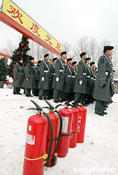 十二月二十三日,北京冬季書市組委會(huì)與東城警方聯(lián)合舉行消防演練,此活動(dòng)主要在于加強(qiáng)即將在地壇舉辦的冬季書市的安全防范以杜絕火災(zāi)。中新社記者:任海霞
