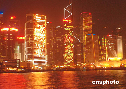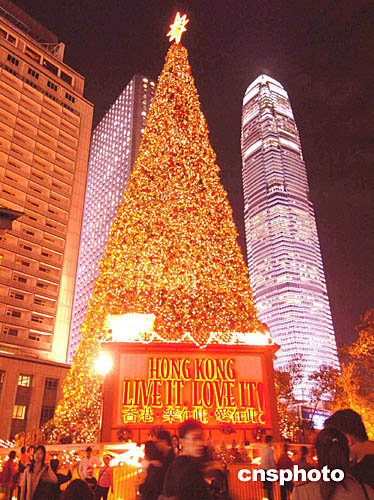 位于中環(huán)皇后像廣場的巨大圣誕樹與國際金融中心二期大廈遙相呼應﹐看似媲美。