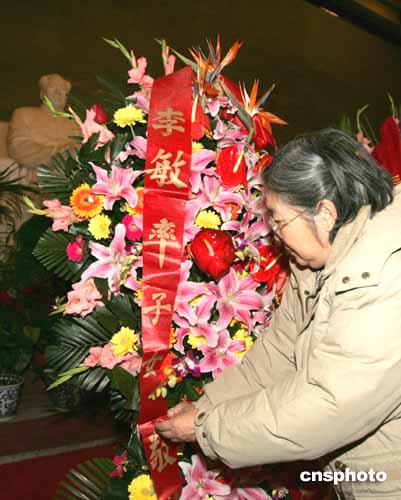 十二月二十六日毛澤東誕辰一百一十一周年之際,毛澤東的女兒李敏(母親為賀子珍)到北京毛主席紀(jì)念堂敬獻(xiàn)花籃。作者:任晨鳴