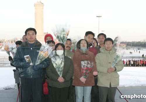 毛澤東的孫子毛新宇代表父母、妻子和2003年12月26日出生的兒子毛東東(毛澤東的曾孫)到北京毛主席紀(jì)念堂敬獻(xiàn)花籃。作者:任晨鳴
