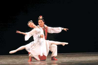 趙明:從結(jié)構(gòu)上講,我用了四段三人舞來(lái)展現(xiàn),愛(ài)情的發(fā)生、發(fā)展、高潮、幻滅的悲劇過(guò)程!都t樓夢(mèng)》是民族經(jīng)典,是中華民族的藝術(shù)瑰寶,她的包容性極強(qiáng)。因此,舞蹈也應(yīng)有強(qiáng)烈的民族特點(diǎn)。在群舞中我運(yùn)用了富有中國(guó)民間舞特點(diǎn)的手絹舞、扇子舞、水袖舞等,讓人一看就知道這是中國(guó)舞劇。