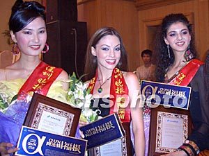 參加第十六屆世界模特小姐大賽的六十六位佳麗五月十五至十六日旋風(fēng)訪(fǎng)問(wèn)深圳,展示迷人風(fēng)姿。圖為中國(guó)的馬力和波黑、希臘小姐被評(píng)為最具人氣獎(jiǎng)。作者:陳文