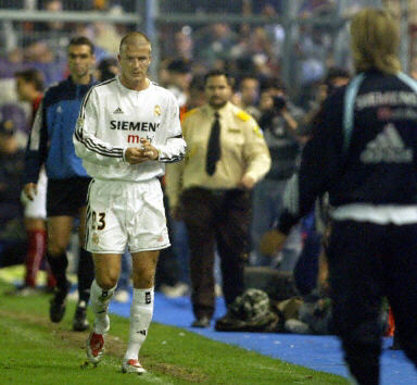 在皇馬客場(chǎng)1:2敗給降級(jí)球隊(duì)穆爾西亞隊(duì)的比賽中,貝克漢姆在第36分鐘時(shí)用言語(yǔ)侮辱邊裁,被紅牌罰下。