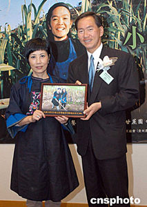 著名藝人汪明荃5月19日在香港出席《樂施會(huì)中國(guó)發(fā)展基金2004》記者會(huì),「樂施大使」汪明荃月前遠(yuǎn)赴貴州省晴隆縣,親身體會(huì)當(dāng)?shù)剞r(nóng)民生活,樂施會(huì)副主席陳智思向「樂施大使」汪明荃送上紀(jì)念照片。作者:鄧慶樂