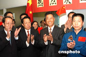 圖為在聯(lián)合國(guó)總部工作的中國(guó)籍和華裔雇員舉行歡迎儀式,迎接代表團(tuán)成員、中國(guó)首飛航天員楊利偉的到來。作者:龔文謨