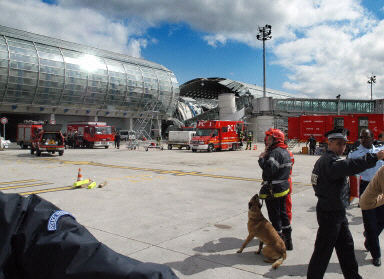 法國官方已在現(xiàn)場啟動了“紅色方案”,即就地展開全方位醫(yī)療救助,并全面實行救援工作,動用一切必要條件,確保搶救工作順利進行。圖為法國警方搜索犬待命拯救坍塌失蹤人員。