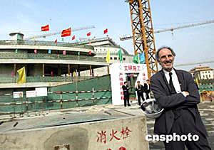 當(dāng)?shù)貢r(shí)間5月23日6時(shí)57分,法國(guó)巴黎戴高樂(lè)國(guó)際機(jī)場(chǎng)2E候機(jī)廳發(fā)生坍塌事故。目前事故中有兩名中國(guó)公民遇難。該候機(jī)樓的設(shè)計(jì)者是巴黎機(jī)場(chǎng)公司建筑設(shè)計(jì)所,原首席設(shè)計(jì)師為保羅·安德魯。他提供的中國(guó)國(guó)家大劇院的設(shè)計(jì)方案,目前正在施工中。據(jù)悉,保羅·安德魯正在趕回法國(guó)途中。圖為保羅·安德魯2003年4月25日北京國(guó)家大劇院工地。中新社記者:滿會(huì)喬