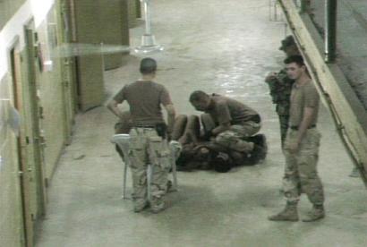 在阿布格萊布監(jiān)獄的虐囚事件中,軍情人員涉嫌鼓勵(lì)美國(guó)士兵虐待囚犯一直是倍受關(guān)注的中心問題。按照規(guī)定,軍事警察的責(zé)任是看守囚犯,無權(quán)參與審訊過程。但負(fù)責(zé)調(diào)查阿布格萊布監(jiān)獄虐囚事件的塔古巴上將卻在一份報(bào)告中引用了一名獄警的證詞,稱軍情人員經(jīng)常游說看守人員虐待俘虜,以讓他們?cè)趯徲嵵兴煽凇?/p>