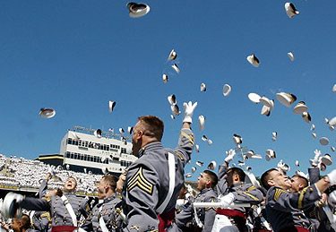 經(jīng)過數(shù)年的苦讀與磨煉之后,美國著名的西點軍校的畢業(yè)生終于“解放了”。圖為2004級畢業(yè)生在參加完他們的畢業(yè)典禮之后,紛紛將畢業(yè)帽甩向半空中,慶祝他們走出校門,踏上未來的“將軍之路”。