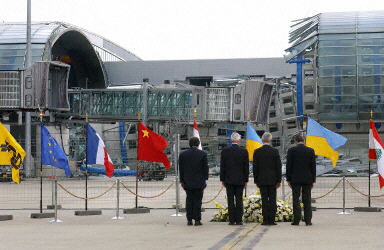 中國駐法國大使趙進(jìn)軍、法國裝備、交通、住房、旅游和海事部部長吉爾·戴·羅比安和戴高樂機(jī)場公司總裁皮埃爾·格拉夫以及遇難者家屬等近800人參加了哀悼儀式。