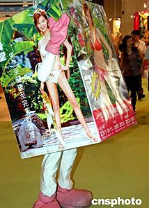 “第三十五屆夏日婚紗及結(jié)婚用品展”六月四日在香港會(huì)展中心開(kāi)幕,是次展覽云集兩百多間公司、三百多個(gè)攤位。圖為商家卡通人在展會(huì)上促銷。作者:錢(qián)興強(qiáng)