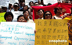 美東時(shí)間六月四日下午,紐約華裔新移民參加了紐約移民組織在市政廳前舉行的集會(huì),要求政府撥款建立移民教育基金,幫助新移民提高英語水平和工作技能。作者:趙海燕