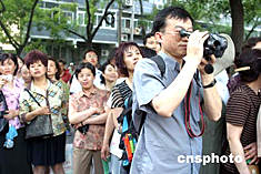 六月八日,北京高考最后一科考試結(jié)束后,在考場(chǎng)外焦急等待的考生家長(zhǎng)們拿起攝影機(jī)為孩子拍下這一生中的難忘一刻。 中新社記者:張勤