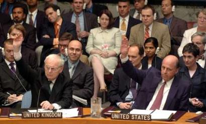 今天下午,安理會十五個(gè)成員國全體投贊成票,通過了美英為主提交的有關(guān)向伊拉克移交主權(quán)的決議,即第一五四六號決議。至此,爭論數(shù)月的伊拉克主權(quán)移交問題獲得聯(lián)合國的背書。伊拉克有望在本月底重返國際大家庭。