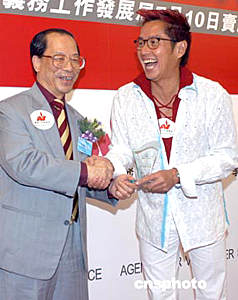 歌星譚詠麟6月9日在香港出席義務(wù)工作發(fā)展局舉行《全民義工參與賣旗日‧榮譽(yù)義工大使委任儀式》,義務(wù)工作發(fā)展局主席李澤培向譚詠麟致送紀(jì)念品。