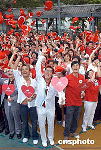 歌星譚詠麟、李克勤、余文樂6月9日在香港出席義務(wù)工作發(fā)展局舉行《全民義工參與賣旗日‧榮譽(yù)義工大使委任儀式》,三位榮譽(yù)義工大使聯(lián)同上百義工齊聲高呼「凝聚義工力量,發(fā)放愛心光芒」口號(hào)。