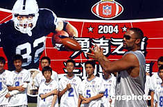 六月十一日,來自美國(guó)國(guó)家橄欖球大聯(lián)盟的明星球員Teyo Johnson在北京對(duì)此間參加首屆美式腰旗橄欖球總決賽的中國(guó)小運(yùn)動(dòng)員進(jìn)行技術(shù)指導(dǎo)。美式腰旗橄欖球是源于美國(guó)國(guó)家橄欖球大聯(lián)盟(NFL)的一項(xiàng)大眾化運(yùn)動(dòng),旨在將美式橄欖球的基礎(chǔ)規(guī)則和技巧介紹給全世界八至十四歲的青少年。目前,這項(xiàng)運(yùn)動(dòng)在世界三十多個(gè)國(guó)家的青少年中廣為流行。中新社記者:武仲林
