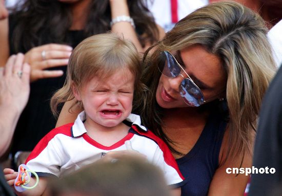 當(dāng)?shù)貢r(shí)間6月13日晚,在葡萄牙里斯本光明球場進(jìn)行的歐洲杯B組比賽中,英格蘭以1:2敗給法國。圖為坐在觀眾席上的貝克漢姆小兒子羅密歐,可能是因英格蘭輸球而痛哭流涕。Ic/cnsphoto 攝