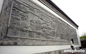 磚雕巨作《錦繡蘇州》于第二十八屆世界文化遺產(chǎn)大會開幕前在蘇州主會場廣場落成,此磚雕是二十名磚雕技工用二百九十一塊金磚歷時三個月完成的。作者:蔣振江