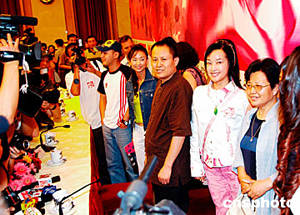 由中國著名電影明星劉曉慶(右二)加盟的電影《春花開》,6月16日日在北京人民大會堂舉行開機(jī)儀式。這部電影由中國第六代電影導(dǎo)演代表之一的劉冰鑒(右三)執(zhí)導(dǎo),他拍攝的《硯床》、《男男女女》等電影作品在海外電影節(jié)上多次獲獎。中新社記者:王麗南