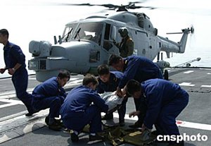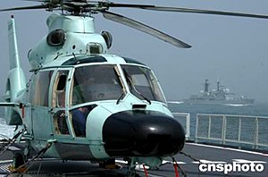 北海艦隊(duì)“哈爾濱”號導(dǎo)彈驅(qū)逐艦、“洪澤湖”號綜合補(bǔ)給艦、“海豚”艦載直升機(jī)和英國皇家海軍“埃克塞特”號導(dǎo)彈驅(qū)逐艦、“山貓”艦載直升機(jī)參加此次非傳統(tǒng)安全領(lǐng)域的聯(lián)合演習(xí)。