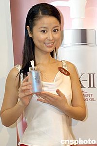 林心如展示SK-Ⅱ新產(chǎn)品。作者:鄧慶樂(lè)