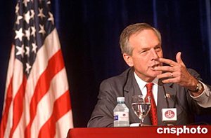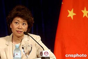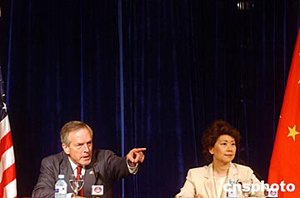 六月二十四日,美國(guó)商務(wù)部長(zhǎng)埃文斯和勞工部長(zhǎng)趙小蘭在北京舉行聯(lián)合記者會(huì),就中美貿(mào)易等有關(guān)問題答記者問。中新社記者:武仲林