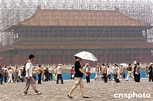 六月夏季,北京故宮博物院乾清門內(nèi)西側(cè)系列旁殿腳手架林立,故宮百年大修工程正在進(jìn)行之中。故宮于1420年建成,此次維修是自1911年辛亥革命以來近百年間,對故宮進(jìn)行的最大規(guī)模的維修。中新社記者:鄒憲
