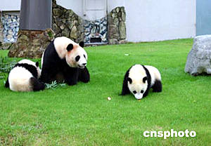 日本和歌山市白浜野生動物園是中外合作繁育大熊貓最多的“兵團(tuán)”。十年前,中日雙方簽定協(xié)議,聯(lián)手繁育研究大熊貓,現(xiàn)在該園已由當(dāng)初的兩只大熊貓繁育成有六只大熊貓的大家族了。圖為大熊貓“隆浜”、“秋浜”與母親“梅梅”在日本和歌山白浜野生動物園玩耍。作者:肖龍聯(lián)