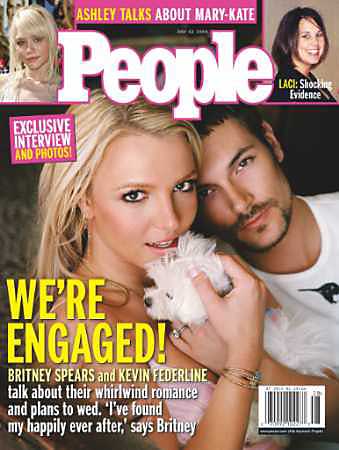 凱文費德藍恩對”人物”雜志表示,他認為求婚應該是男方開口才對,他拒絕布蘭妮求婚要求的幾分鐘之后,便換成他詢問布蘭妮”是否愿意嫁給我”,布蘭妮馬上就答應了。