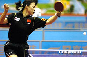 中國(guó)乒乓球隊(duì)七月二日在廣東湛江舉行熱身賽,這也是中國(guó)乒乓球隊(duì)在出征雅典奧運(yùn)會(huì)前最后一次公開(kāi)熱身。圖為為王楠在熱身賽中四比三險(xiǎn)勝小將丁穎。作者:柯小軍