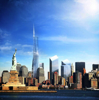 最終勝出的是理念前衛(wèi)的建筑師丹尼爾·利柏斯凱因德。他設(shè)計(jì)的1776英尺高的“自由塔”形似遙相呼應(yīng)的自由女神像。