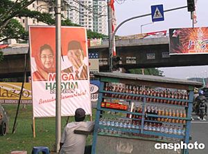 印尼現(xiàn)任總統(tǒng)梅加瓦蒂面對(duì)強(qiáng)力挑戰(zhàn),候選人當(dāng)中有兩個(gè)印尼退休將軍。其中一個(gè)是印尼前政治安全統(tǒng)籌部長(zhǎng)蘇希洛·班邦·尤多約諾,另一個(gè)則是印尼前三軍總長(zhǎng)維蘭托。