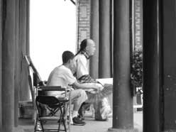張國立日前在懷柔飛騰影視基地拍攝《紀(jì)曉嵐3》,同兒子張默一同出演的電視劇《少年寶親王》也在此拍攝。由于劇組封鎖嚴(yán)密,工作人員拒絕媒體入內(nèi),連影迷也被驅(qū)趕出場。不過,前日中午,本報記者在懷柔對張國立父子進(jìn)行了8小時的“跟蹤追擊”。