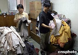 十二日北京小商品批發(fā)城的商戶正在清理被雨水浸泡過的地下室?guī)旆,北京前兩日的暴雨造成該地下室積水三十公分,損毀了大批貨物。中新社記者:廖文靜