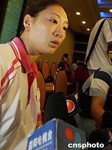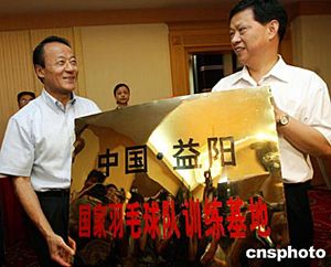 十四日,中國國家體育總局在湖南益陽市宣布中國羽毛球隊參加雅典奧運(yùn)會的五個單項參賽隊員名單和替補(bǔ)隊員名單,上屆奧運(yùn)會羽毛球銅牌得主、世界冠軍夏煊(xuan火加宣)澤列為替補(bǔ)隊員,可能無緣參加這一體育盛會。圖為國家體育總局乒羽中心主任劉鳳巖與夏煊(xuan火加宣)澤在一起。中新社記者:宋吉河