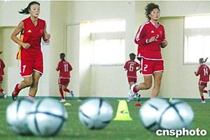 七月十四日,中國女足的姑娘們在上海東方綠洲訓(xùn)練基地積極備戰(zhàn),為即將到來的雅典奧運(yùn)會做最后的沖刺。作者:湯彥俊