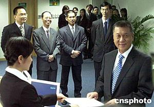 十五日下午,澳門特別行政區(qū)行政長官何厚鏵到選舉協(xié)調中心領取參選提名表,隨后舉行記者會發(fā)表參選聲明。作者:梁永強