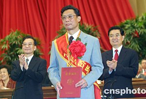 中新社北京七月二十日電(記者邢利宇)中國廣州呼吸疾病研究所所長、中國工程院院士鐘南山在今天開幕的“第七屆全國歸僑僑眷代表大會”上當選“僑界十杰”,并從國家主席胡錦濤手中接過“僑界十杰”證書。