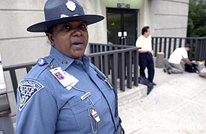 民主黨大會當?shù)貢r間七月二十六日在波士頓開幕,為確保大會安全,自上周五以來,麻州州警取消休假,每日工作13小時,麻州羅根機場更是警察云集。圖為便衣警察在搜查一位自拉斯維加斯登機的攜帶毒品的男性嫌疑人,非裔警官阿克嫚叮囑記者不要拍到便衣警察的臉。作者:陳鋼