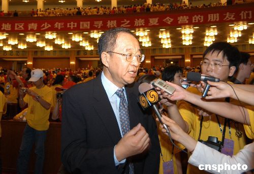 七月二十七日上午,“二零零四年海外華裔及港澳地區(qū)青少年中國尋根之旅夏令營”開營儀式在北京人民大會(huì)堂隆重舉行,來自三十六個(gè)國家和港澳地區(qū)的近四千名青少年參加了開營式。國務(wù)院僑辦副主任劉澤彭在開營式后成為媒體采訪焦點(diǎn)。作者:徐曦弋