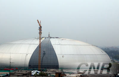 中新網(wǎng)7月28日電 經(jīng)過兩個(gè)月緊張施工,國家大劇院6687平方米的玻璃幕墻已經(jīng)全部安裝完畢。
