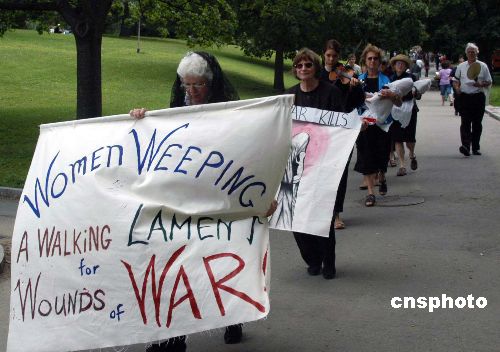 美國民主黨全國大會舉辦之際,波士頓街頭常有各種訴求的游行示威。這是一個名為“婦女哭泣”的行走活動穿過市中心的波士頓公共公園,她們穿黑衣、抱著襁褓,表達對戰(zhàn)爭摧殘生命的不滿。作者:余東暉