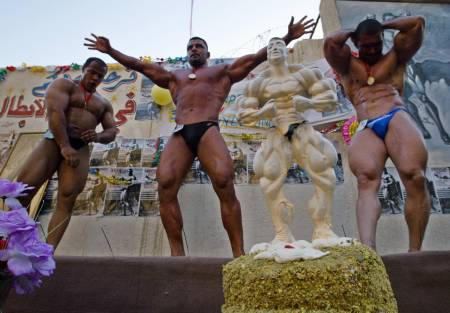 原來,巴格達有一座以前健美冠軍施瓦辛格名字命名的“阿諾光榮”體育館,這次健美比賽——伊戰(zhàn)后的伊拉克首次全國健美比賽(男子)——就是在該體育館的一塊露天場地上進行的。